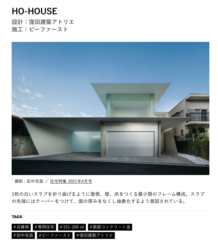 兵庫県宝塚市の「HO-HOUSE」が新建築住宅特集2021年4月号に掲載されました!!